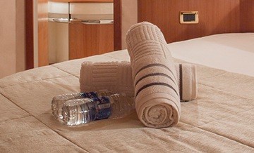 Carbonated soft drinks, bottled water and ice, disposable cups, plates and cutlery, fresh towels